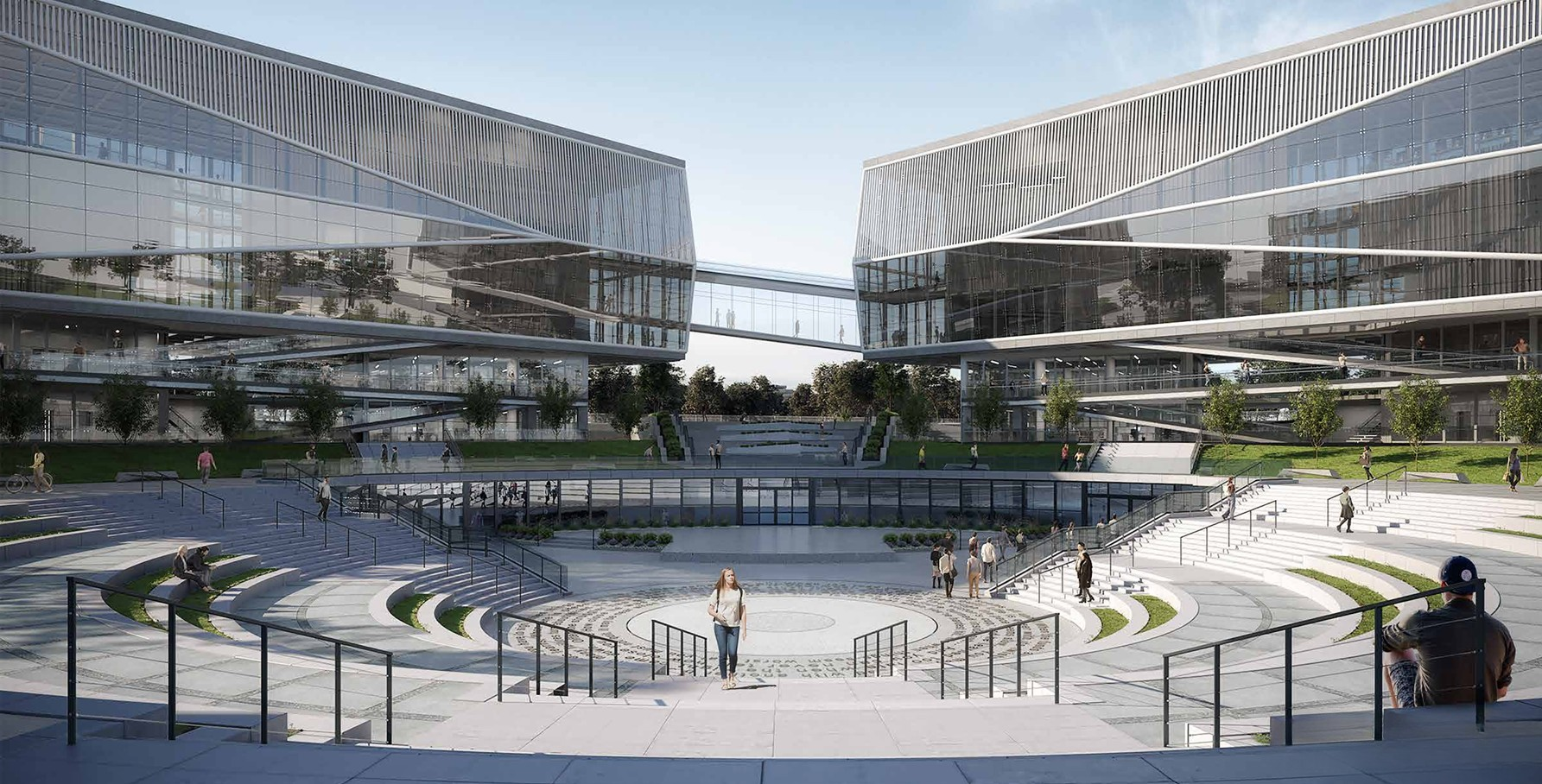 This compelling rendering showcases the architectural vision for Al Hayah University in El Cairo, a landmark project by Vanderpas Design